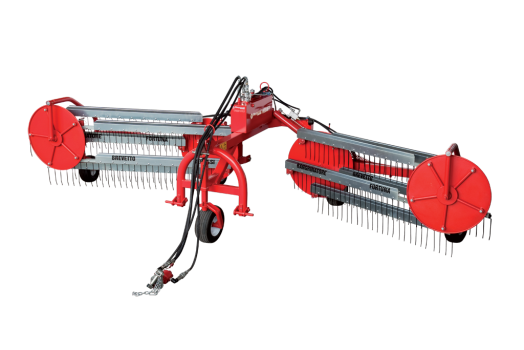 Ta tip vlečenih zgrabljalnikov je posebej zasnovan za centralno oblikovanje vrst, kjer se seno zbere v sredino za enostavnejše pobiranje ali baliranje. Ponuja večjo stabilnost pri vlečenju in omogoča bolj urejene vrste, ki so primernejše za nadaljnjo obdelavo. Sistem deluje brez dodatnih hidravličnih povezav, kar poenostavi uporabo.