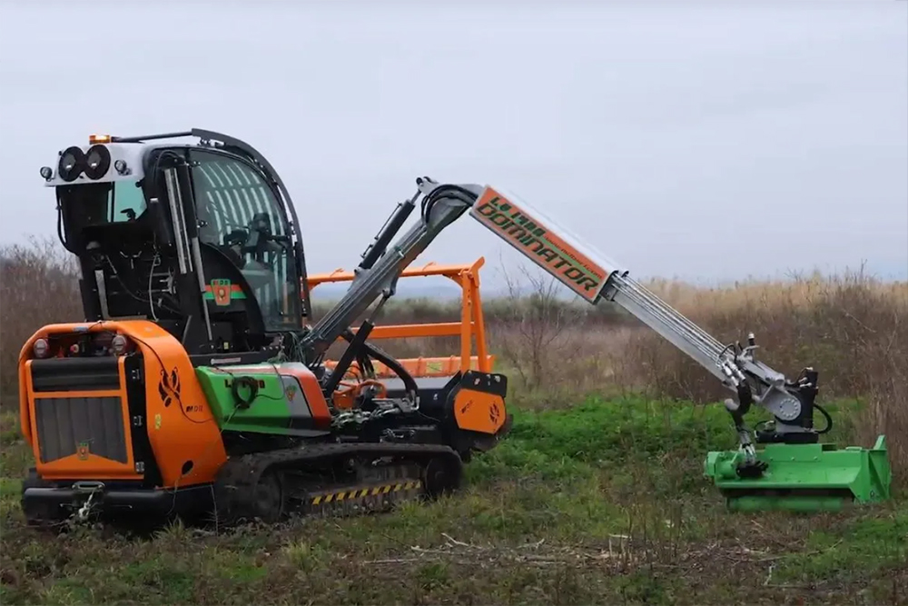 LV 1400 DOMINATOR je opremljen z izjemno agilno roko, ki omogoča enostaven dostop do oddaljenih prostorov (tako bočno kot v višino), prilagaja se različnim delovnim višinam. Roko je mogoče opremiti z mulčerjem za natančno in hitro košnjo.