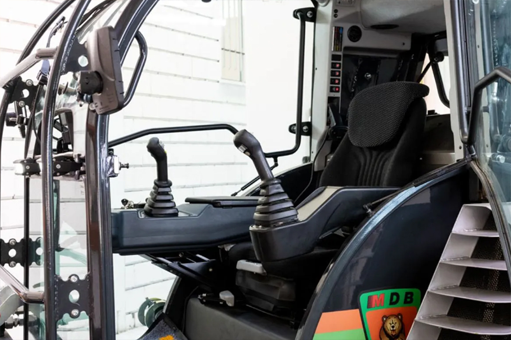 Kabina je zasnovana tako, da zagotavlja največje udobje in nadzor za operaterja. Opremljena s klimatsko napravo omogoča prijetno delovno okolje tudi v najtoplejših dneh. Integriran zaslon na dotik nudi intuitiven vmesnik za upravljanje funkcij stroja, medtem ko vgrajena kamera zagotavlja popoln pregled nad okolico, kar povečuje varnost med delovanjem. Te napredne funkcije omogočajo operaterju natančen in varno delo v vsaki situaciji.