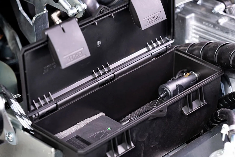 Pameten sistem baterije je integriran, tesno zaprt predal, v katerem se nahaja polnilec za baterijo daljinskega upravljalnika. Med delovanjem naprave se pomožna baterija samodejno polni, kar zagotavlja nemoten potek dela.