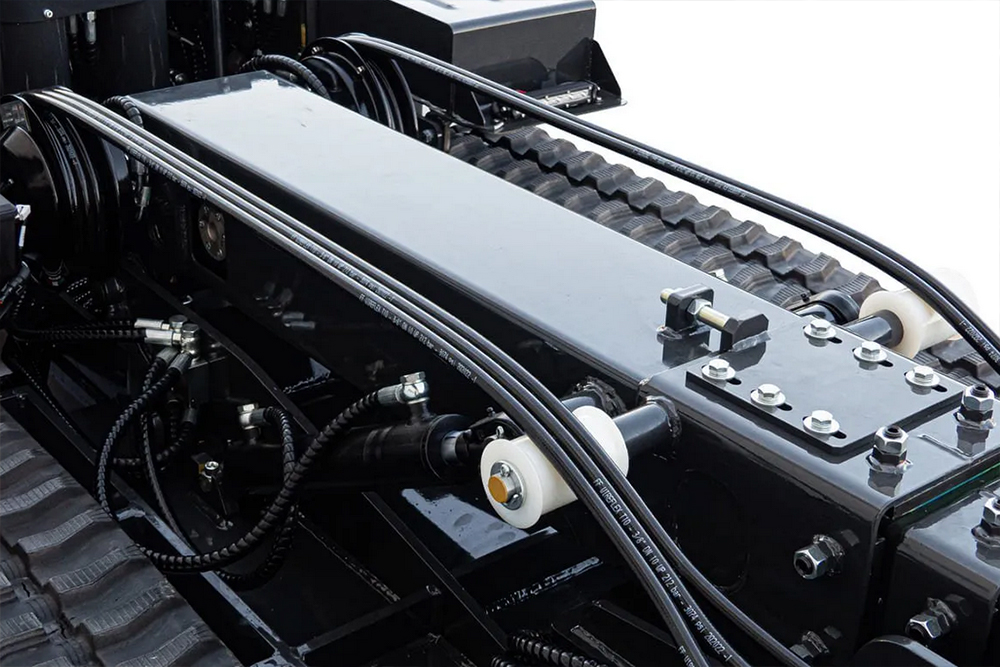 Drog z nastavljivim naklonom pripelje tovor neposredno do težišča, kar zagotavlja neprimerljivo stabilnost tudi na neravnih površinah, medtem ko patentirane gosenice omogočajo, da Pocketbucket deluje tam, kjer tradicionalni mini nakladalniki odpovejo – na blatnem terenu, pobočjih in zahtevnih deloviščih.