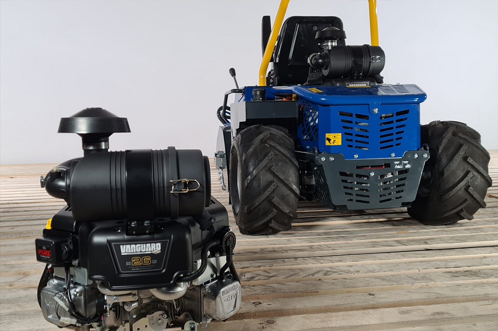 RACOON 95 – 4×4 je opremljen z štirikolesnim pogonom in 25 KM motorjem Briggs & Stratton 8-44C8, kar zagotavlja izjemen oprijem na strmih pobočjih. Napreden hidrostatski pogon in zapora diferenciala omogočata natančno manevriranje v vseh razmerah. Idealen je za uporabnike, ki potrebujejo več moči in stabilnosti na zahtevnem terenu.